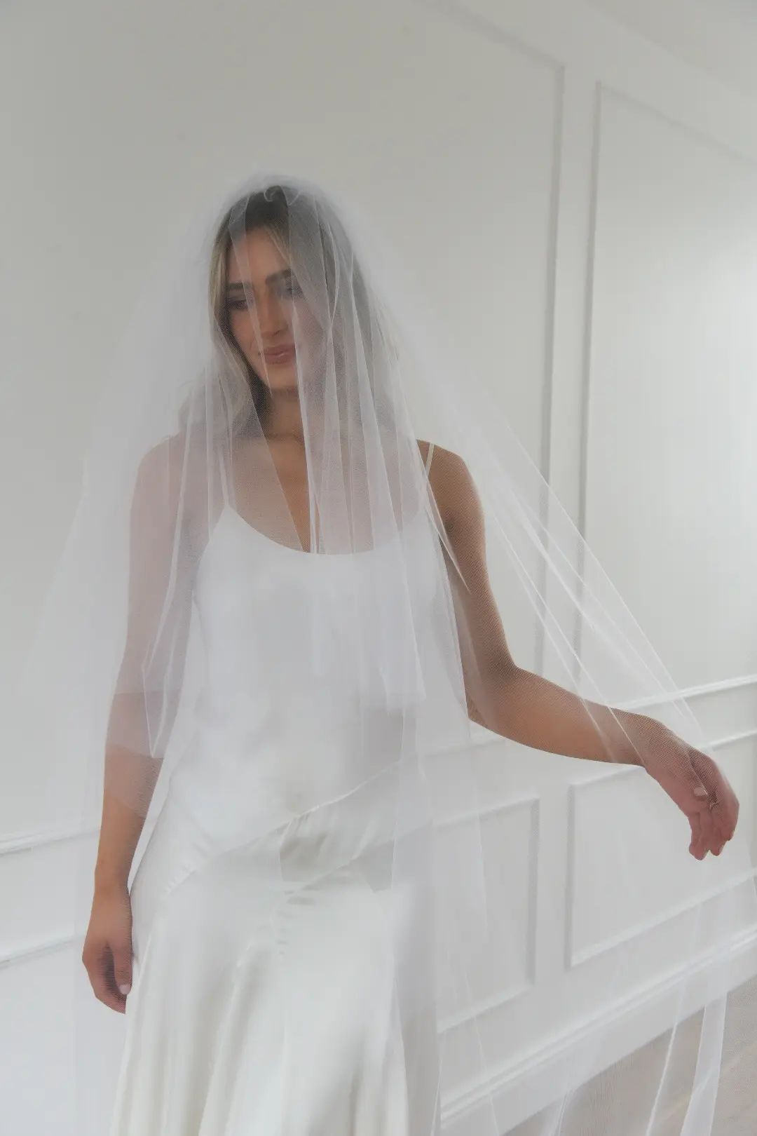 Double tier raw edge veil in delicate sheer tulle.